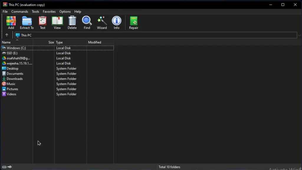 WinRAR’s interface is simple, clean and clear the makes it easy to use, even if you are don’t use WinRAR ever before you find it easy to navigate and explore its features and it feels like you are familiar with it already. Because it is UI as it is as “Windows”. We will walkthrough you to few of its features such as quick-access buttons for common tasks like Add, Extract, and Test. WinRAR also integrates seamlessly with Windows – you can drag and drop files onto the window or use the right-click context menu to zip files without opening the program. Overall, this balance of a simple UI plus powerful options makes WinRAR suitable for both beginners and advanced users.